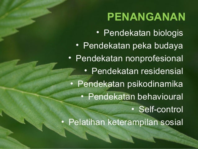 · PENANGANAN • Pendekatan biologis • Pendekatan peka budaya • Pendekatan nonprofesional • Pendekatan residensial • Pendekatan psikodinamika • Pendekatan behavioural • Self-control • Pelatihan keterampilan sosial